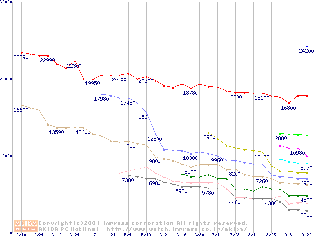 Socket 370・FSB 100MHzの最安値推移