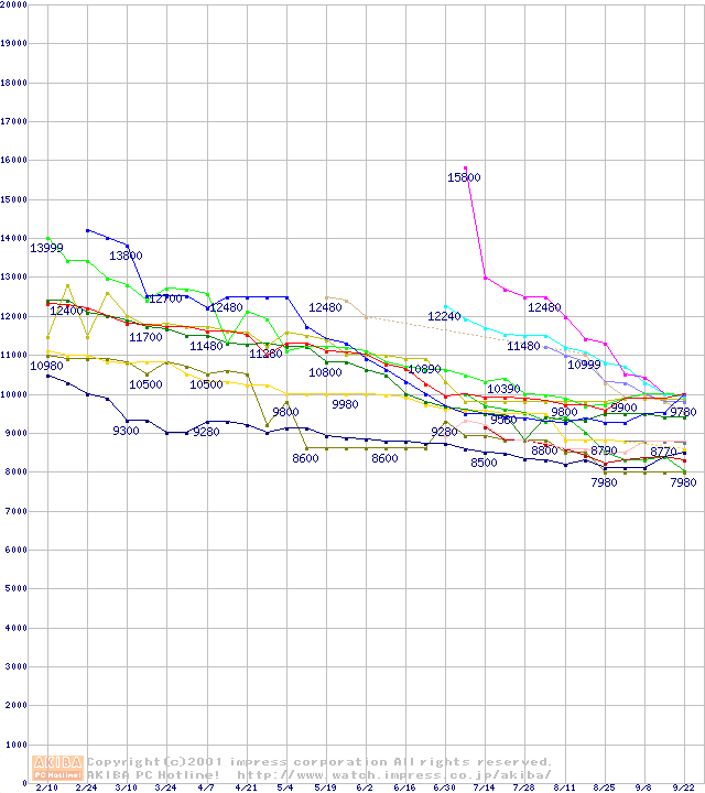 HDD主要製品の最安値推移