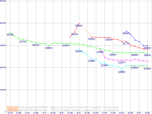 HDD主要製品(最安値1万5千円~2万円未満)の最安値推移