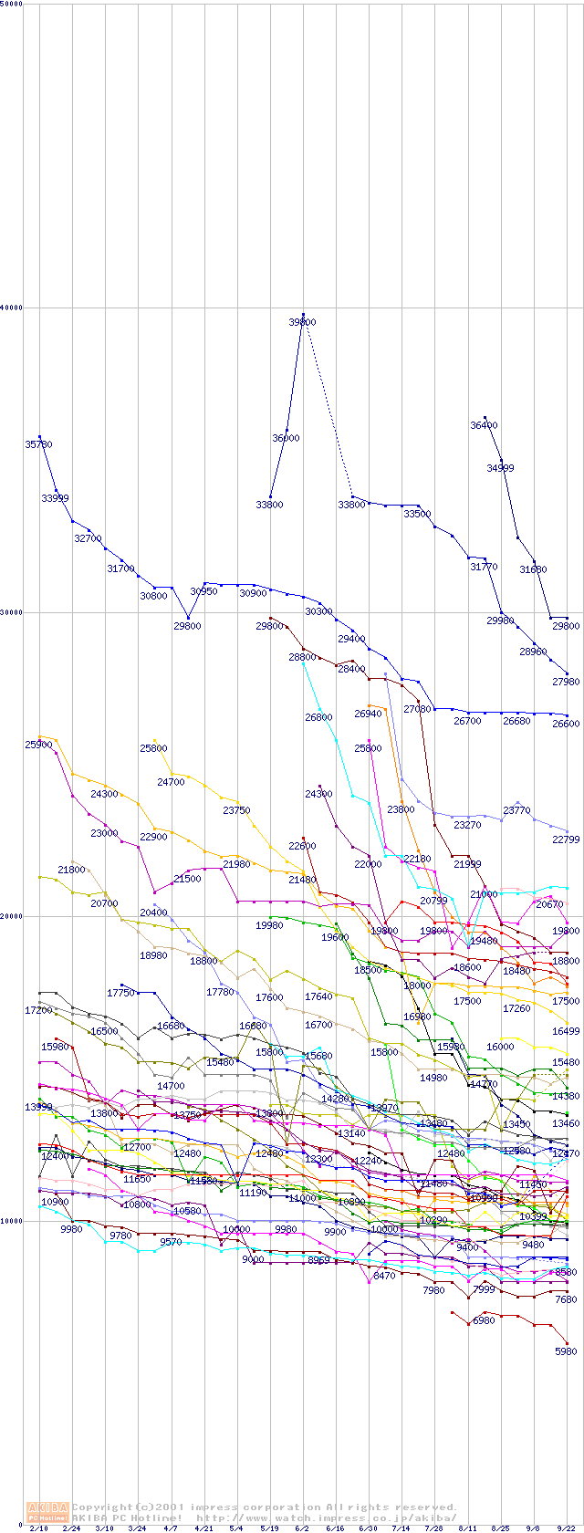 HDD主要製品の最安値推移
