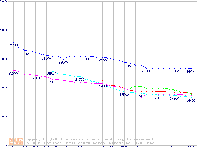 | [↓次グラフ]: | HDD 80GB以上(7,200rpmクラス)の最安値推移 |