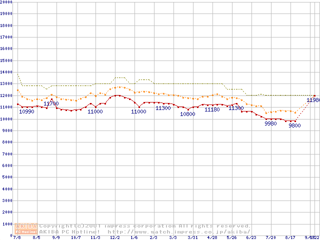 Deskstar 75GXP (7,200rpm Ultra ATA/100 2MB)の最安値推移