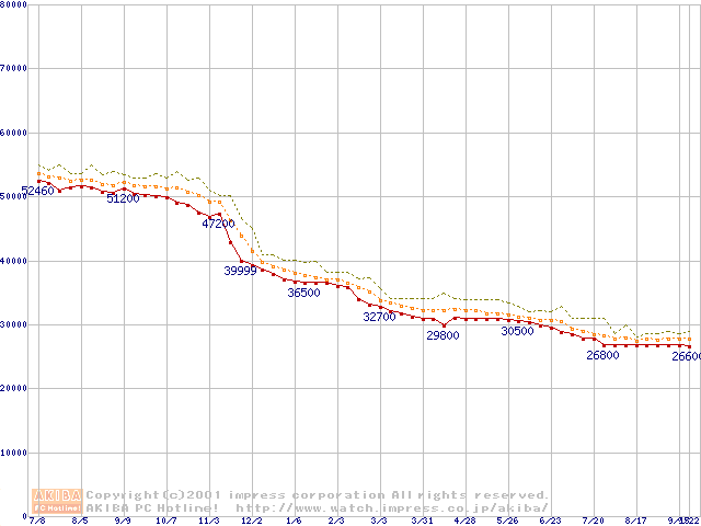 Deskstar 75GXP (7,200rpm Ultra ATA/100 2MB)の最安値推移