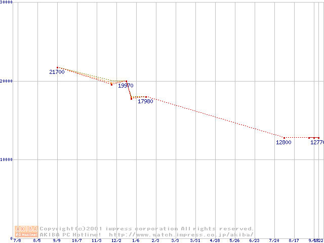 Socket 370 (FC-PGA,FSB 133MHz,L2 256KB)の最安値推移
