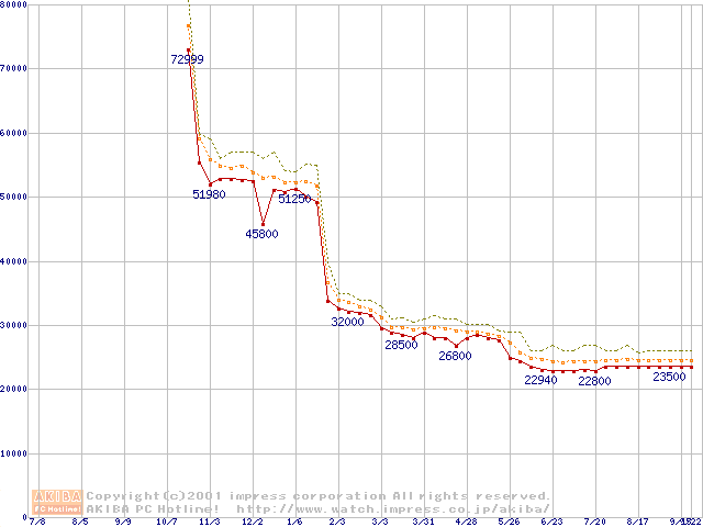 Pentium III 1BGHz FC-PGA リテールパッケージの価格推移