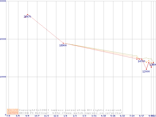 Slot 1 (SECC2,FSB 100MHz,L2 256KB)の最安値推移