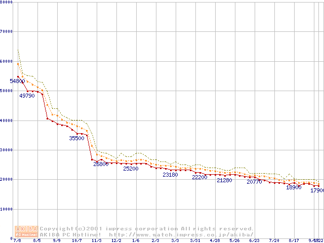 Pentium III 866MHz SECC2 リテールパッケージの価格推移
