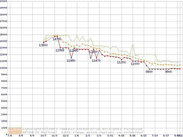 WD Caviar (7,200rpm Ultra ATA/100 20GB/Platter)の最安値推移
