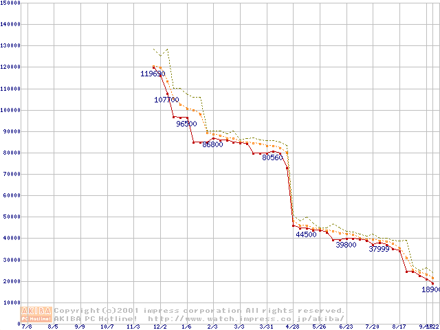 Pentium 4 1.5GHz(423pin)リテールパッケージ(128MB)の価格推移