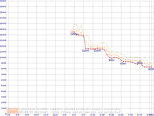 Socket A (PGA,FSB 200MHz,L2 64KB)の最安値推移