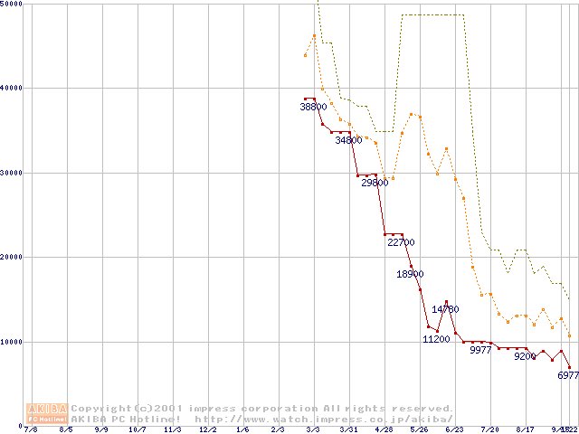 PC2100(DDR266) DDR SDRAM DIMM ECC対応の最安値推移