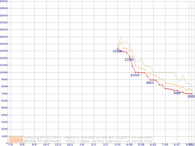 Socket A (PGA,FSB 200MHz,L2 64KB)の最安値推移