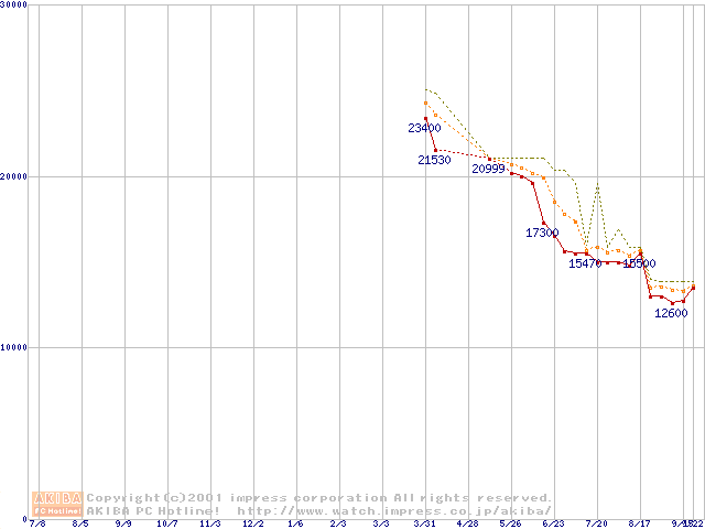Athlon 1GHz(FSB266) (Thunderbird) リテールパッケージの価格推移