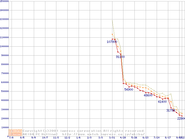 Pentium 4 1.5GHz(423pin)リテールパッケージ(256MB)の価格推移