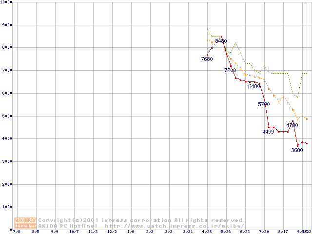 Socket 370 (PGA,FSB 100MHz,L2 64KB)の最安値推移