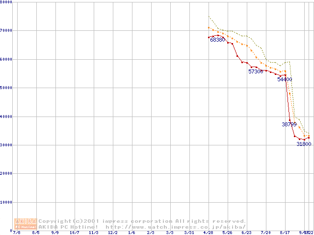Pentium 4 1.7GHz(423pin)リテールパッケージ(256MB)の価格推移