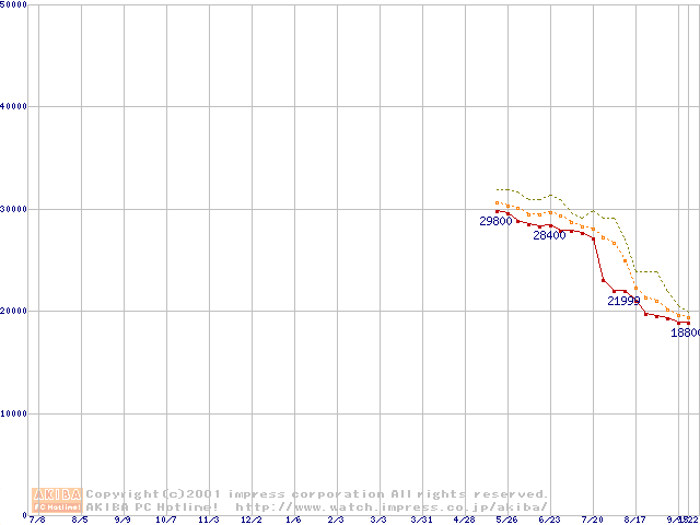 DiamondMax 536DX (5,400rpm Ultra ATA/100 33.3GB/Platter)の最安値推移