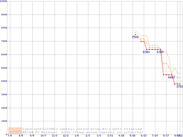 Socket 370 (PGA,FSB 133MHz,L2 64KB)の最安値推移