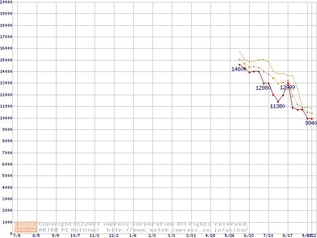 Duron 950MHz リテールパッケージの価格推移