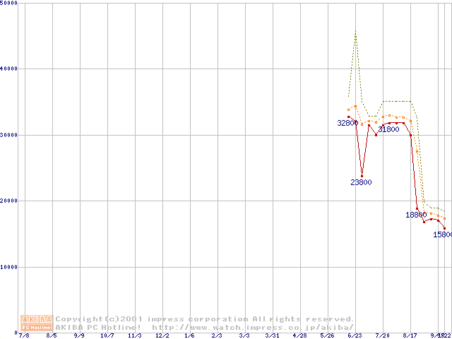 Pentium 4 1.5GHz(423pin)リテールパッケージ(RIMMなし)の価格推移