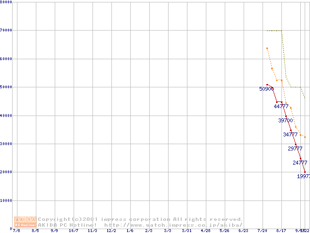 PC133 SDRAM DIMM CasLatency=3 ECC対応 Registeredタイプの最安値推移