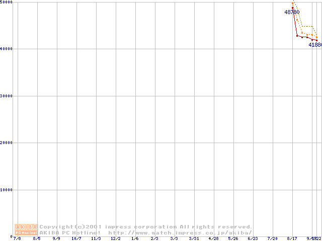 Socket 370 (FC-PGA2,FSB 133MHz,L2 512KB)の最安値推移