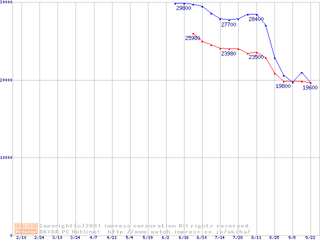 | [↓次グラフ]: | Socket A (Thunderbird,PGA,FSB 266MHz,L2 256KB)の最安値推移 |