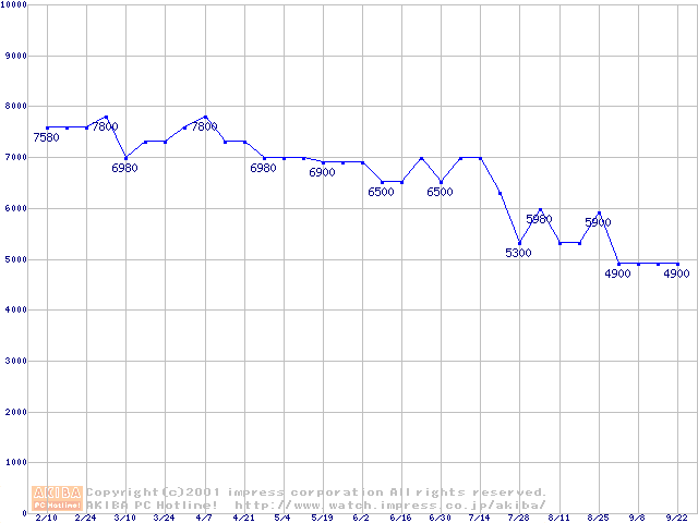 | [↓次グラフ]: | Socket A (Palomino,PGA,FSB 266MHz,L2 256KB)の最安値推移 |