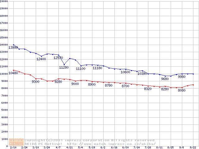 | [↑前グラフ]: | MPG3xxxAH-E (7,200rpm Ultra ATA/100)の最安値推移 |