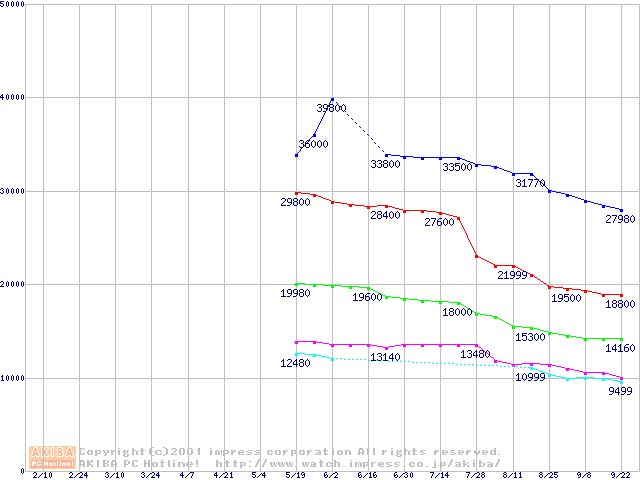 | [↓次グラフ]: | DiamondMax 80 (5,400rpm Ultra ATA/100)の最安値推移 |