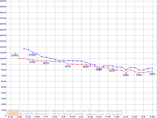 | [↓次グラフ]: | DiamondMax VL 40 (5,400rpm Ultra ATA/100)の最安値推移 |