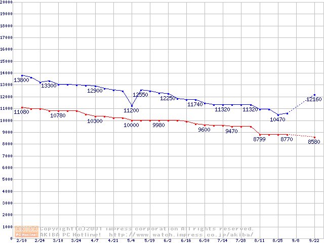 | [↑前グラフ]: | 531DX (5,400rpm Ultra ATA/100)の最安値推移 |