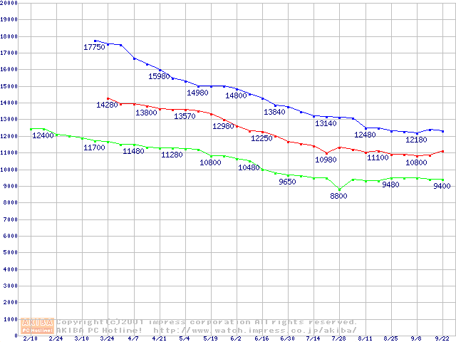 | [↓次グラフ]: | U6 (5,400rpm UltraATA/100 2MB 40GB/Platter)の最安値推移 |