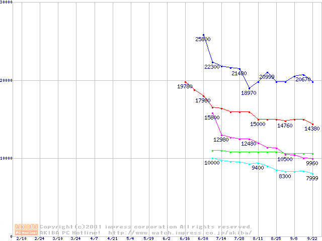 | [↓次グラフ]: | U5 (5,400rpm UltraATA/100 512KB)の最安値推移 |