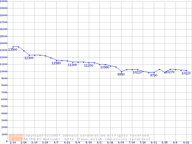 | [↓次グラフ]: | Deskstar 60GXP (7,200rpm Ultra ATA/100 2MB)の最安値推移 |