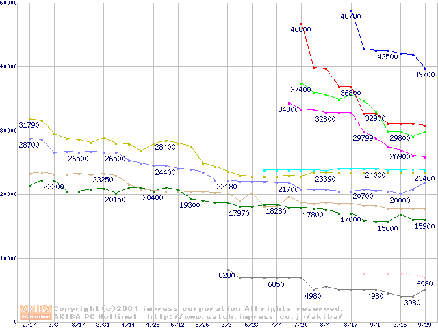 Socket 370・FSB 133MHzの最安値推移