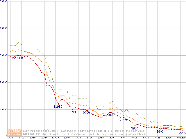 PC133 SDRAM DIMM CasLatency=3の最安値推移