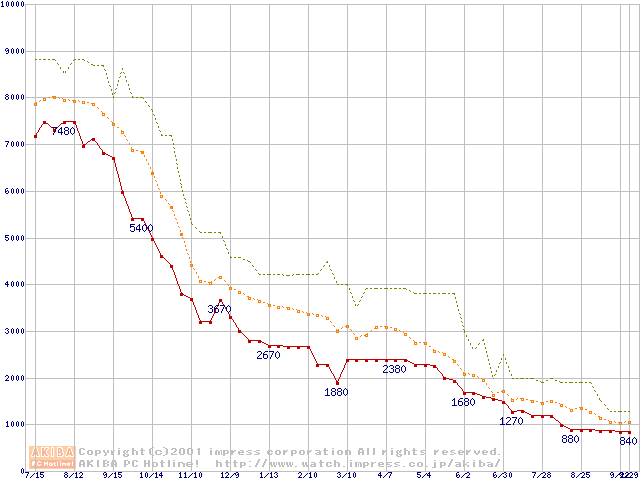 PC133 SDRAM DIMM CasLatency=3の最安値推移