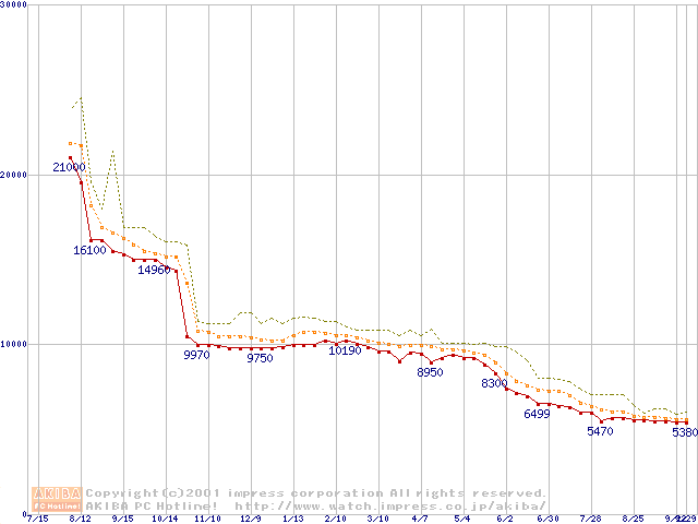 Celeron 700MHz FC-PGA リテールパッケージの価格推移