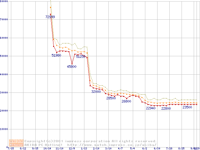 Pentium III 1BGHz FC-PGA リテールパッケージの価格推移