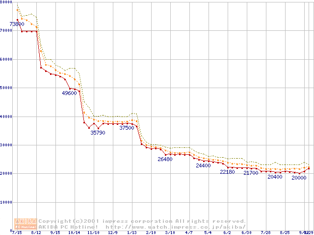 Pentium III 933MHz FC-PGA リテールパッケージの価格推移