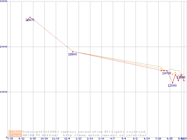 Slot 1 (SECC2,FSB 100MHz,L2 256KB)の最安値推移