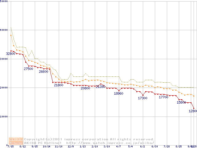 Pentium III 800EBMHz SECC2 リテールパッケージの価格推移