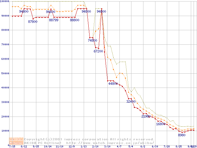 PC800 DRDRAM RIMMの最安値推移