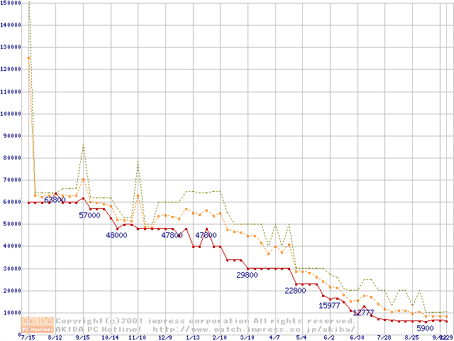PC100 SDRAM DIMM CasLatency=2の最安値推移