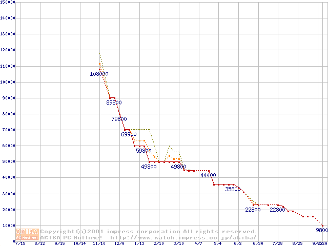 Socket 423 (PGA,L2 256KB)の最安値推移