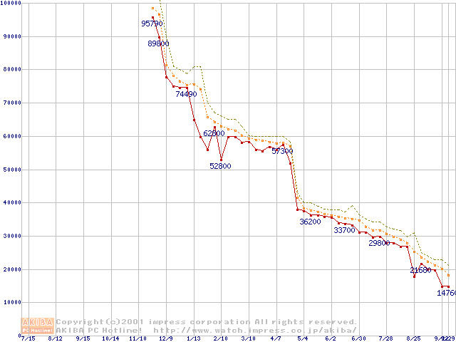 Pentium 4 1.4GHz(423pin)リテールパッケージ(128MB)の価格推移