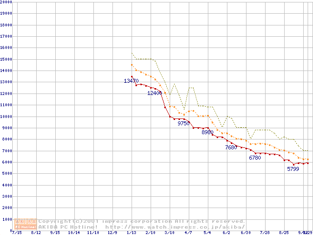 Socket A (PGA,FSB 200MHz,L2 64KB)の最安値推移