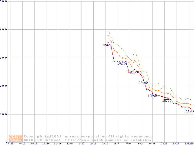 Socket A (Thunderbird,PGA,FSB 266MHz,L2 256KB)の最安値推移
