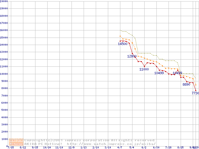 Duron 900MHz リテールパッケージの価格推移